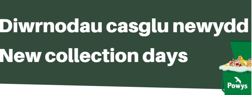| ♻️ 🗓 Recycling and waste collection days change in March 2026 Most homes in Powys will have a new waste collection and recycling day starting on Monday 2 March 2026. Powys County Council will introduce new and improved collection routes to make the recycling and waste service more efficient. These changes mean that many households will have a new collection day. Residents will receive a letter by mail confirming their new collection day before the change takes place. |